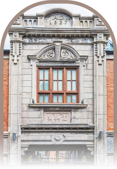 石库门通常为砖砌结构,水磨石做内墙,水洗石做外墙,门框采用石材或砖砌拱券,大门多为双开的厚重黑漆木门。门楣常有西式浮雕或中式匾额,既有“锦绣前程”这样寓意美好的字样,也有“东吴世泽”等昭示家族渊源的门牌。