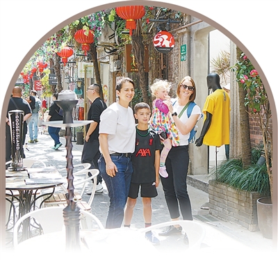 中外游客在上海黄浦区田子坊观光游览。